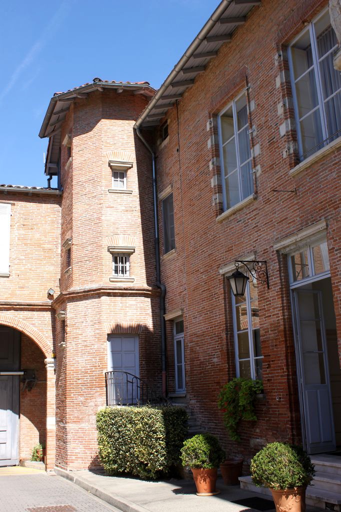 Nicolas de Boysset était trésorier du Domaine, donc ni capitoul, ni marchand, ni parlementaire... notez par conséquent que le classement de cet hôtel dans cette sous-rubrique des hôtels de parlementaires du 16ème siècle est discutable (mais je n'allais pas créer une rubrique juste pour lui). Et même doublement discutable en réalité, car cet hôtel annoncé du XVIème siècle me laisse quelques doutes sur sa datation. Les fenêtres à meneaux sur rue sont possiblement du XVIème siècle, mais le style de la petite cour intérieure en brique, et notamment de la tour, me semble plus évoquer le XVIIème siècle. Donc, pour l'essentiel de l'hôtel, datation à prendre avec des pincettes.